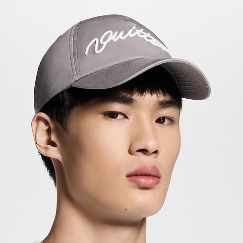 The signature cap is a reliably fashion-forward hat that modernizes the House's reverence for tradition. The style's innate athleticism is juxtaposed with an elaborately handwritten "VUITTON" across the front, embroidered in a crisp white, adding a distinguished touch. The result is an alluring style that accompanies all manner of pursuits, Monday through Sunday.