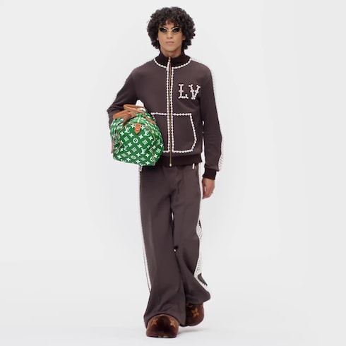 Creative Director Pharrell Williams revisits the iconic Speedy P9 Bandoulière 50 Monogram Leather bag in luxuriously soft and supple calfskin with a bold primary colorway. The Monogram is printed on the Speedy using a sophisticated silk-screen technique that reproduces the twill aspect of the Monogram on canvas, a blurry, almost hand-painted effect.