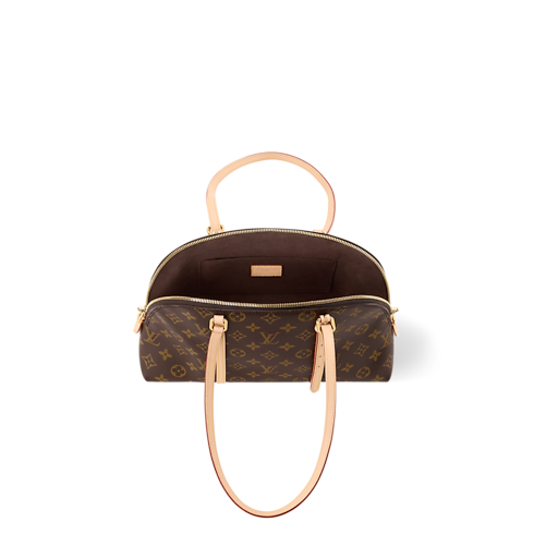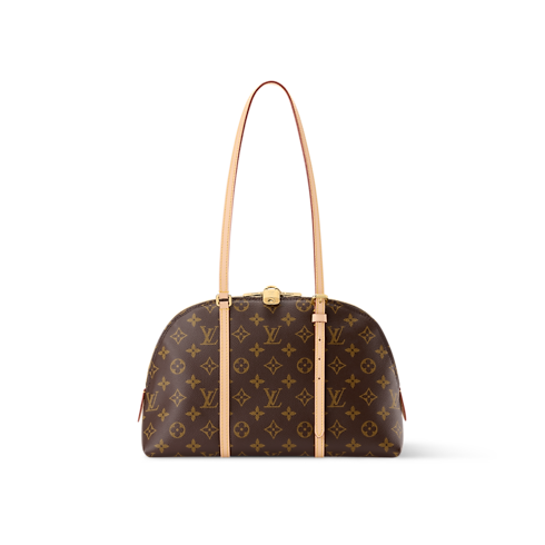 The name Squire pays tribute to the 1934 forebear of our iconic Alma, from which the new Squire shape is inspired. Designed with a structural profile, it is crafted from Monogram canvas and trimmed with smooth cowhide straps. Ideal for commuting into the city, it is sized to fit a tablet amongst other daily essentials, and is finished with elegant gold-toned hardware. The signature padlock references traditional Louis Vuitton trunks.