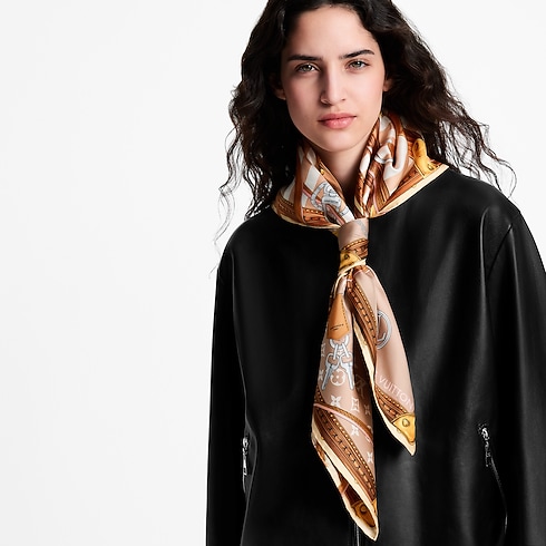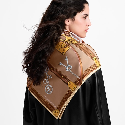 The artistic design of the Strap And Trunk square was inspired by classic creations from the House’s archives. Printed on fine silk, it depicts four historic canvas-covered trunks adorned with signature motifs like the Monogram and Damier patterns, overlaid with leather straps and padlocks. A stylish, versatile accessory and an elegant ode to the spirit of travel.