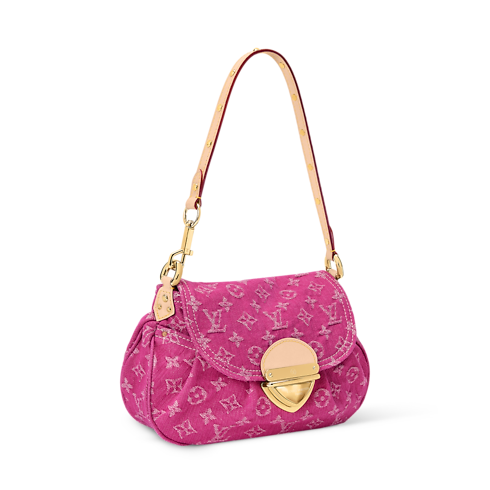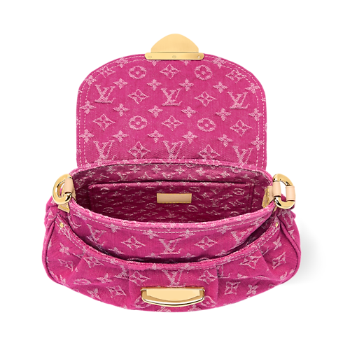 This contemporary edition of the Sunset handbag belongs to the Rendez-Vous collection. Crafted from denim in a vibrant Fuchsia colorway, it is adorned with gold-toned hardware that complements the seasonal palette. It is defined by a statement tuck lock and can be worn cross-body, over one shoulder or carried by hand. Inside, there is a flat pocket and enough space to store daily essentials.