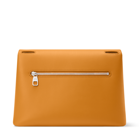The Take Out Messenger, in saffron cowhide leather, features the iconic contrasted embroidered LOUIS VUITTON signature and joins the LV Packaging collection. Compact yet stylish, it offers just the right amount of space with a tone-on-tone lining and two flat pockets. A long strap allows for shoulder or cross-body wear.