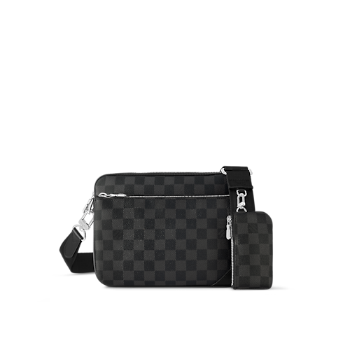 The modular, and highly versatile, Trio Messenger is made from Monogram Eclipse coated canvas with touches of bold colored cowhide leather to bring a contemporary feel. The Trio is composed of a main pouch, a removable front zipped pocket, and a small detachable coin purse on the strap. Each of which can be used separately.