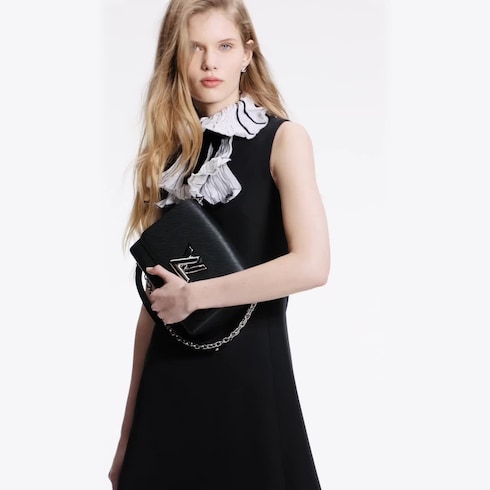 Crafted from the House’s emblematic Epi leather, the Twist MM chain bag features the now-iconic LV Twist lock, a sculptural signature in silvery polished metal. Unexpectedly roomy thanks to the cleverly designed “wave” base, this beautifully made bag is a fashionable day-to-evening companion. The sliding chain strap can be doubled for shoulder carry or lengthened for cross-body wear. A New Classic of the House, the Twist bag was introduced at the 2015 Cruise show.