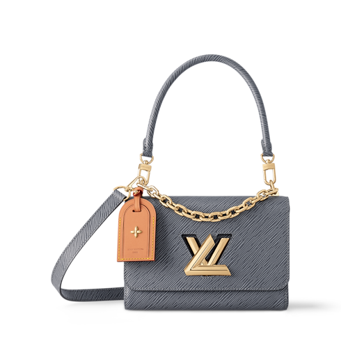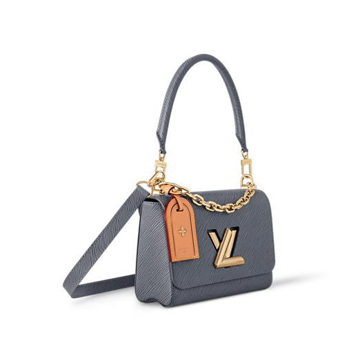 This unique iteration of the Twist MM is crafted in signature Epi leather with a denim effect to create a vintage-inspired finish. It is elevated with a gold-toned LV Twist lock and removable chain detail, while the contrasting leather tag symbolizes the House’s trunk-making heritage. Designed for day-to-night versatility, detach the handle to carry it by hand.