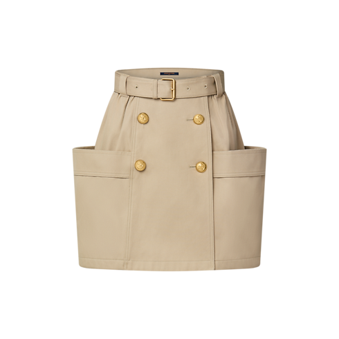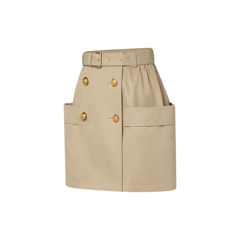 A play of scale and structure elevates this casual cotton gabardine skirt with an elegant utility feel. Two scaled-up patch pockets add sculptural volume to the silhouette, while an eyelet belt cinches the waist and a double-breasted panel trimmed with domed golden anchor buttons adds a polished uniform accent to the front.