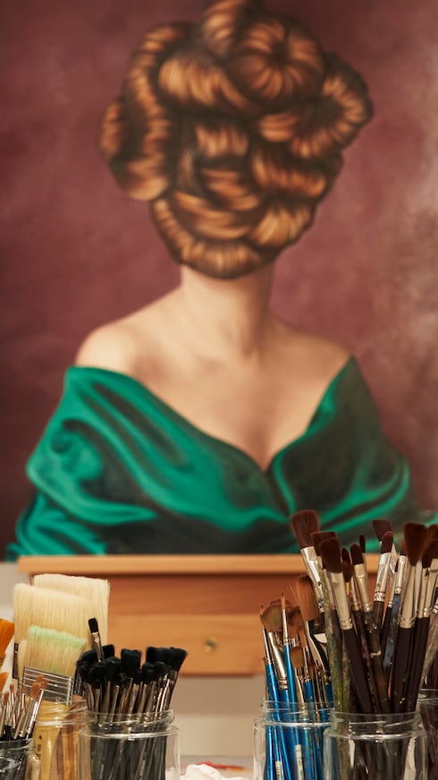 Polish artist Ewa Juszkiewicz deconstructs conventional ideas of feminine beauty, contrasting traditional European painting with the surreal to create hybrid figures.