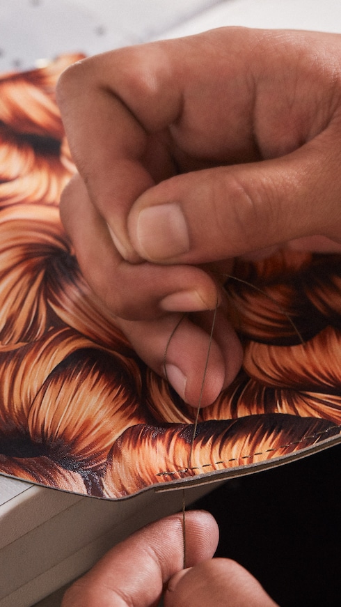 Hand-sprayed onto smooth leather, the gradated green background mirrors the original oeuvre to showcase the vibrant portrait, its details captured and reproduced in ultra-high definition using an innovative 3D printing technique, which was also employed to camouflage the iconic LV signature. “I wanted the bag to reflect the essence and character of my paintings. By combining various techniques and materials, like the hand-dyed leather and multilayered printing, the final effect is beautiful and sophisticated.” – Ewa Juszkiewicz