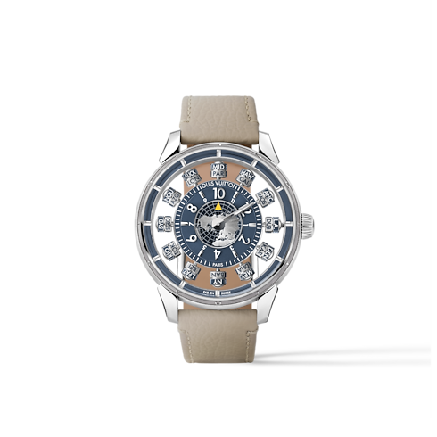 An invitation to explore space in homage to the House’s travel heritage, the Tambour Taiko Galactique unites meticulous enameling and gold engraving with a mechanical caliber – featuring a minute repeater and an automata mechanism to animate the dial.